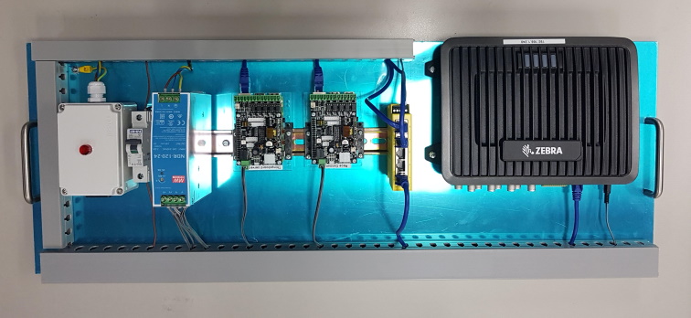 The UMD Model A120 Series of RFID Control Panels are prefabricated electrical control assemblies for embedding into RFID reading based systems such as RFID Portals and Tunnel Readers. (See UMD Model A123 Series for control box versions.) The A120 series interconnects RFID Readers, Controllers, Network Devices, Input/Outputs and Power Supplies into a self contained control panel and uses industry standard DIN rail mounting components. In particular the A120 Series forms the basis of UMD's RFID Advance Controller for Embedded (RACE) applications with the addition of UMD's RACE software. The Linux based controller is used to control the attached UHF readers and all aspects of the portal system, including RFID data capture, sensor integration, diagnostics, database and communications. Users may simply browse, using Wifi, to the RACE Dock portal to view diagnostics and basic functionality. Furthermore data capture can be processed prior to transferring to host systems via standard industry web services (REST/Jason).