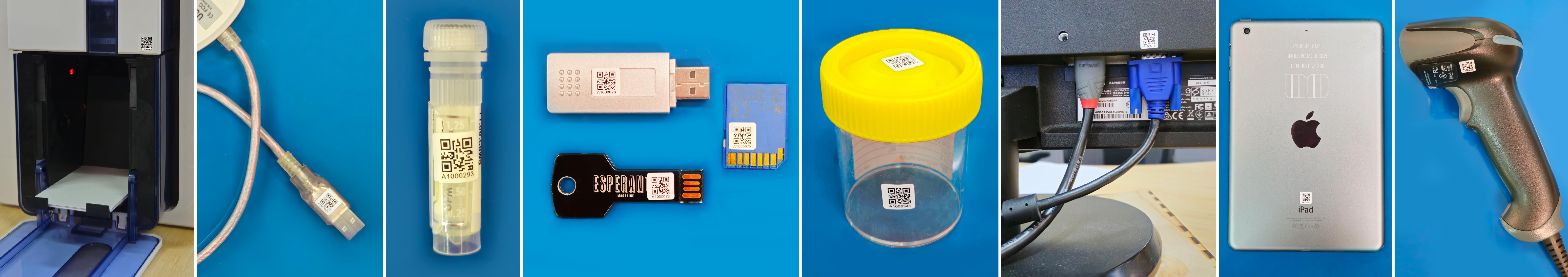 ![]() | Unique Micro Design (UMD) custom Q●Dot™ are tough and small 10mm adhesive barcoded asset labels that use the QR Code symbology. Q●Dots™ are printed at a high resolution, allowing them to be read by standard 2D barcode readers and smartphones. Their small size makes them ideal for tagging small assets or for discreet asset labelling. UMD custom Q●Dots™ are available in pre-printed sheets of 49 custom Q●Dots™ per sheet or can be customised with your own unique sequence.