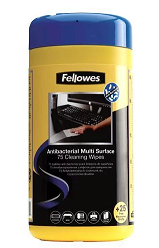 General Cleaning Cleaning Wipes At around $0.33 each these are cheap insurance for unnecessary equipment down time | UMD Part Number: 9-7080-090-2 Availability: Box of 25 Fellowes Surface Cleaning 75 Wipe Tub Antibacterial Active Ingredients: Proplyene Glycol Ethers (<2%), Alkyl dimethyl benzyl ammonium chloride (<0.5%) |